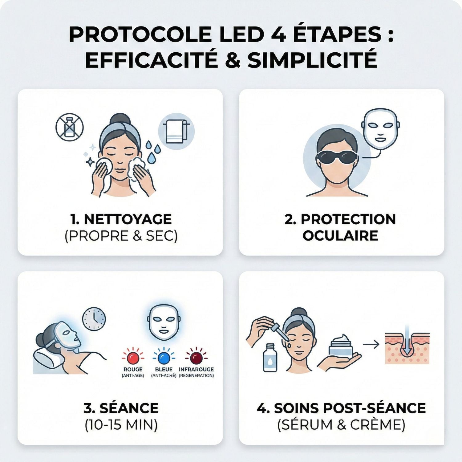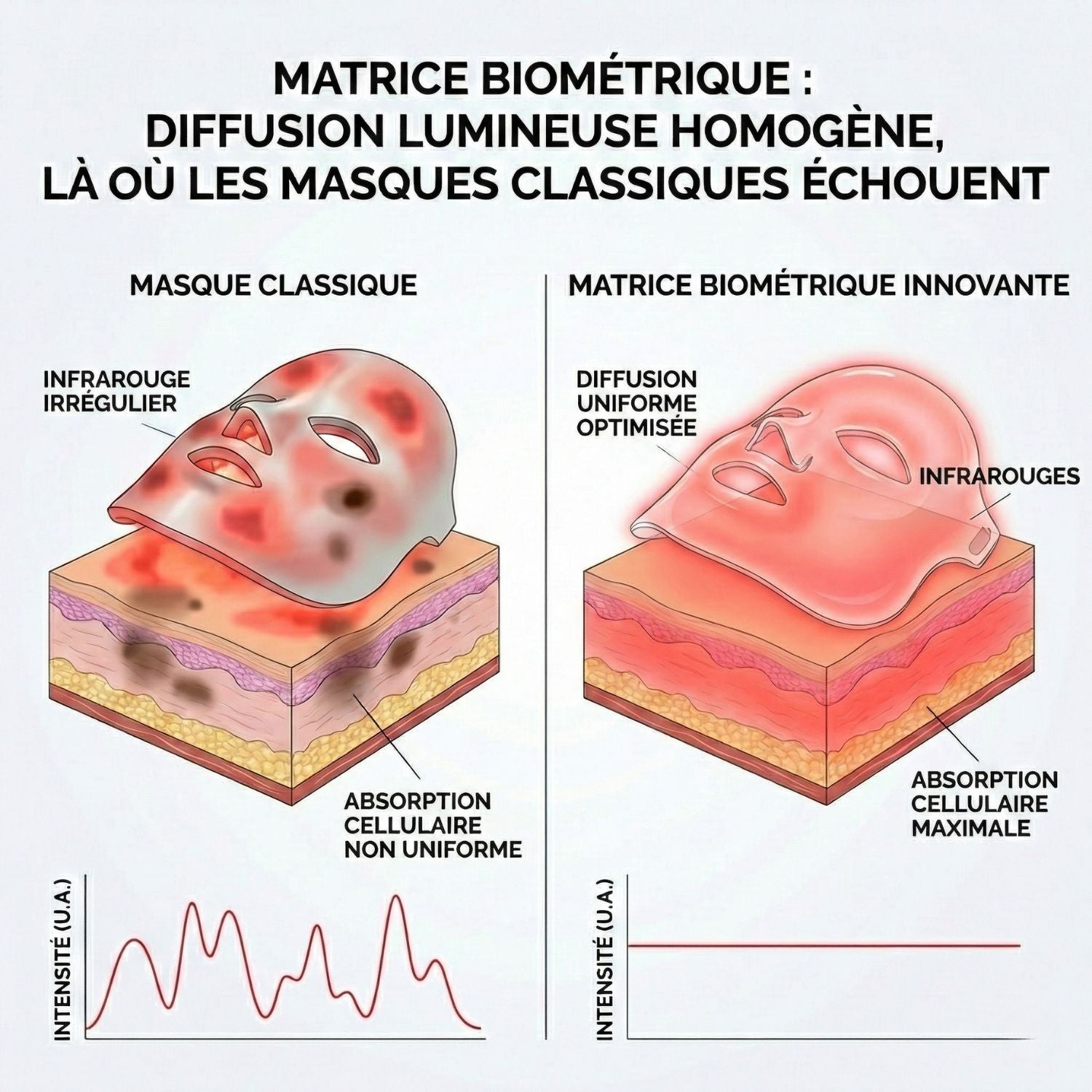 La lumière rouge et infrarouge représente le standard d'or en dermatologie anti-âge. C'est la seule technologie capable d'inverser le vieillissement cellulaire, offrant des résultats dignes des traitements en clinique.