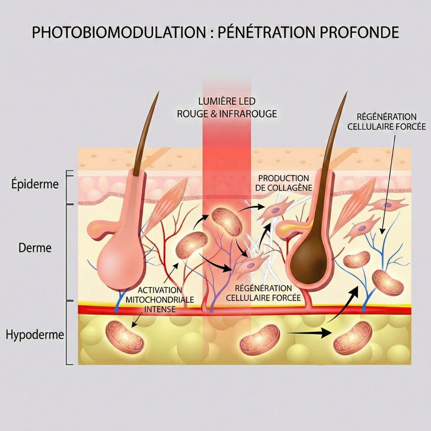 La photobiomodulation est une technologie cliniquement reconnue pour stimuler la régénération cellulaire au cœur du derme.
